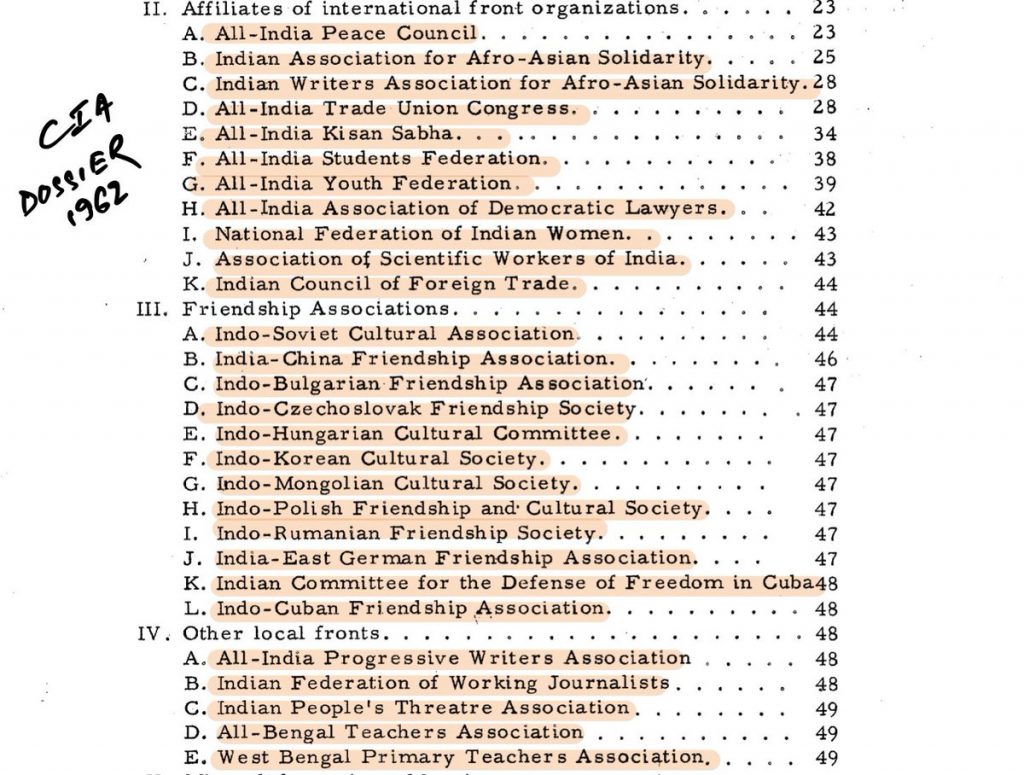 This is when they mastered propping different organisations, and called themselves “Civil Society”. If you think making front organisations is new or merely some conspiracy theorist’s imagination, have a look at this list of left front organisations that CIA maintained in 1962.